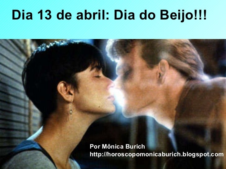 13 de abril dia do Beijo.O Dia Internacional do Beijo ou Dia do Beijo é comemorado em 13 de abril. Esta data homenageia um dos gestos de carinho mais intenso.