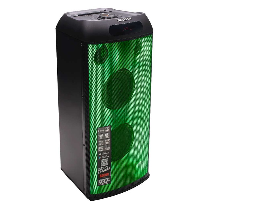 Caixa Som Amplificada Bluetooth Full LED Torre 800W TWS Polyvox POLYVOX