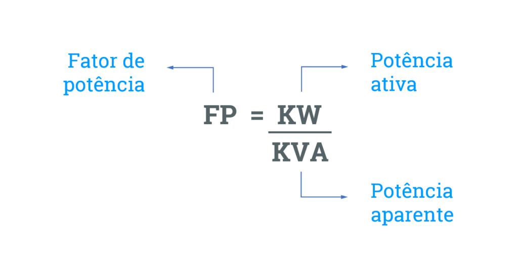 Fórmula do fator de potência. Na imagem abaixo é possível visualizar a fórmula de como calcular o fator de potência, confira. Na imagem acima temos que a fórmula de como calcular o fator de potência é igual a: FP = P / S. Onde: FP é o fator de potência; P é a potência ativa KW; S é a potência aparente em KVA;