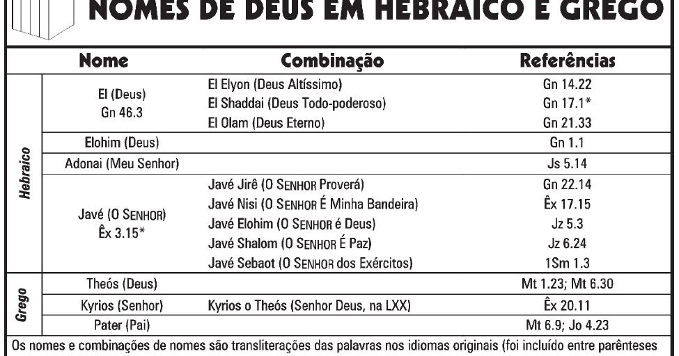 Os Nomes de Deus em Hebraico e Grego Estudos e Comentários Bíblicos
