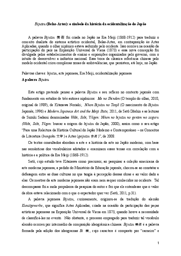 (DOC) Bijutsu (BelasArtes) o símbolo da história da ocidentalização do Japão Michiko Okano