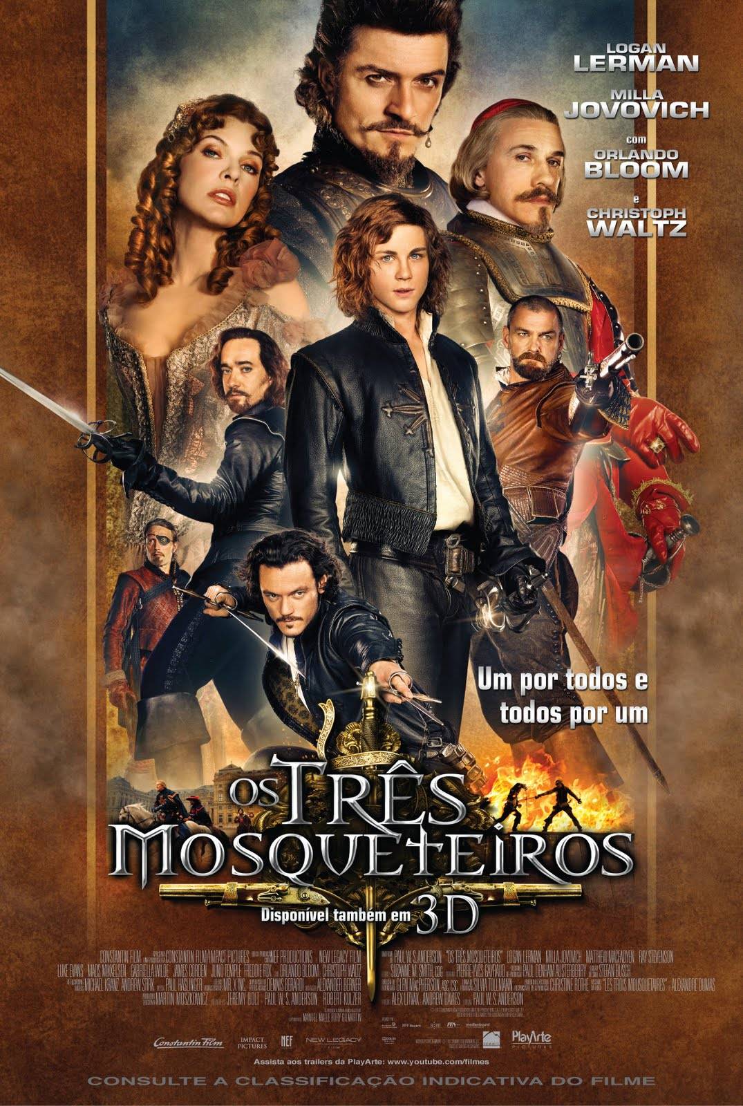 Os Três Mosqueteiros é um filme dirigido por Paul W.S. Anderson com Logan Lerman, Milla Jovovich. Sinopse: D'Artagnan (Logan Lerman) é um jovem do interior treinado pelo pai para se tornar.